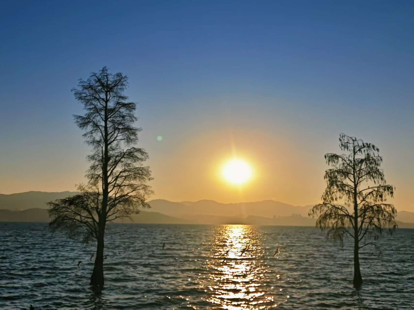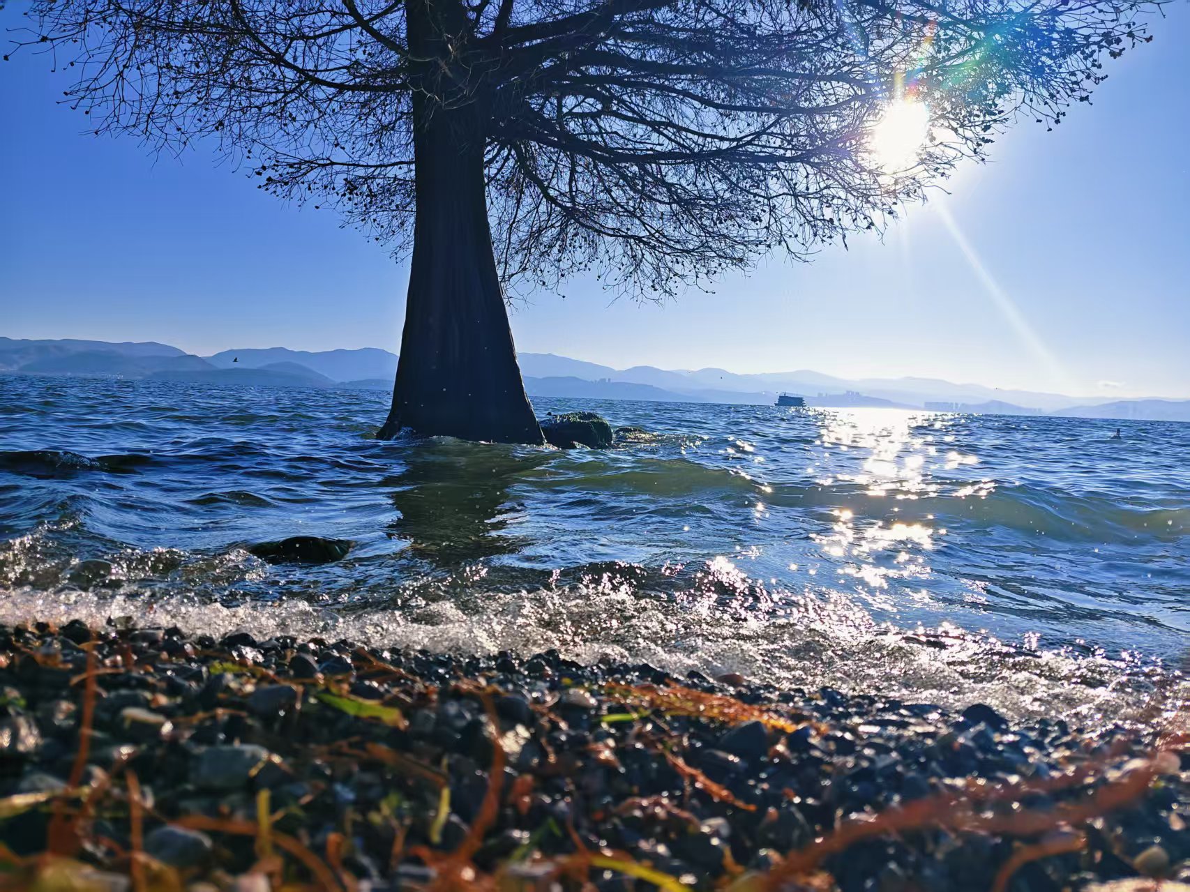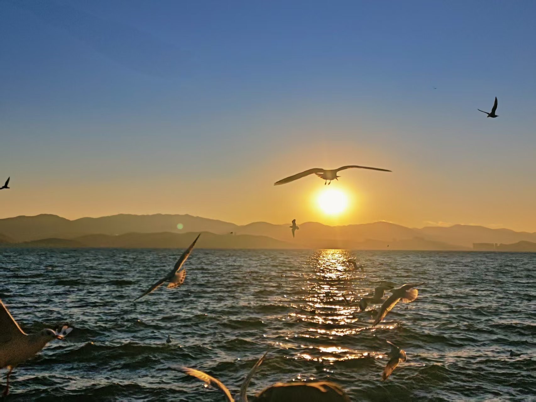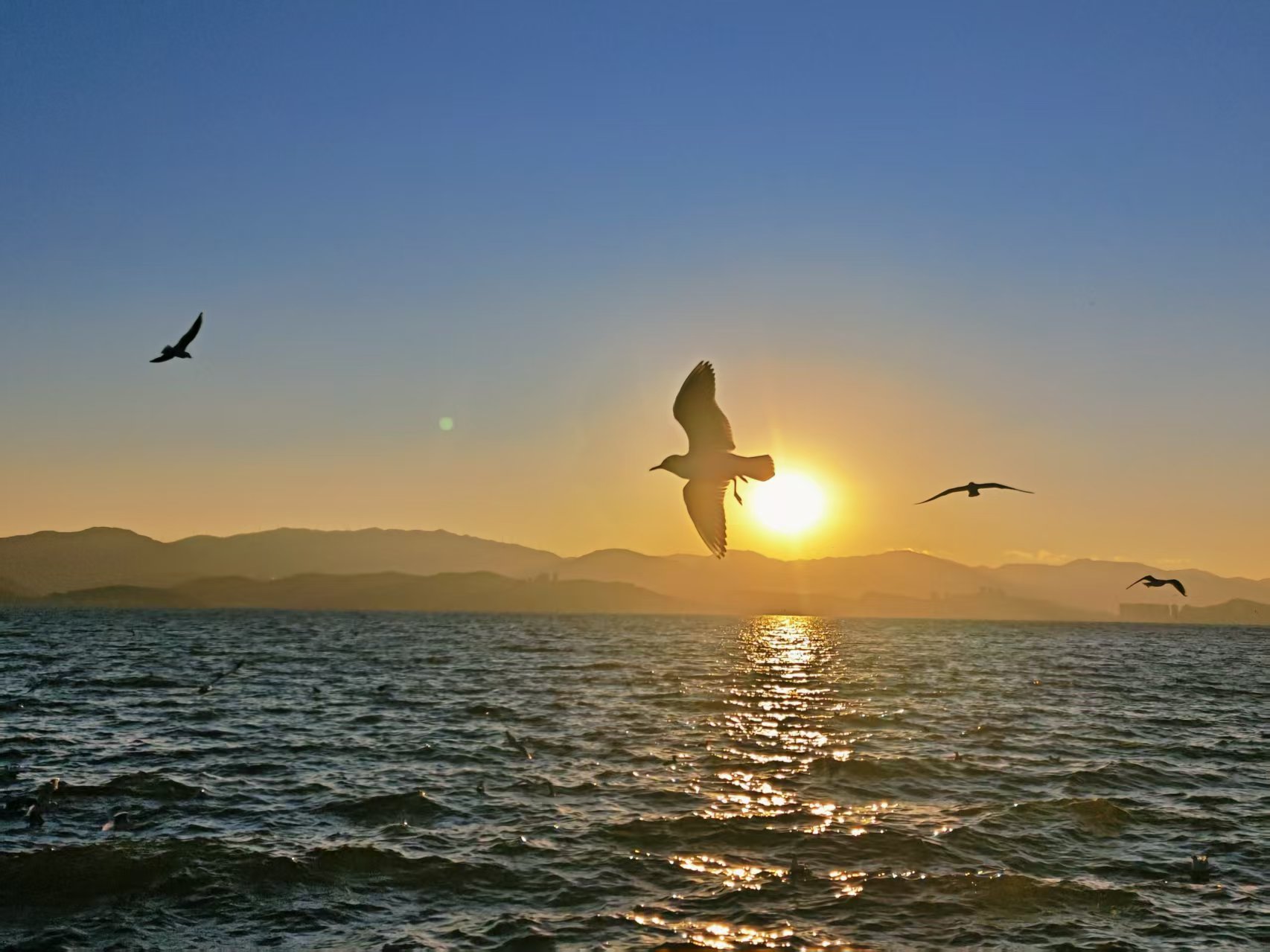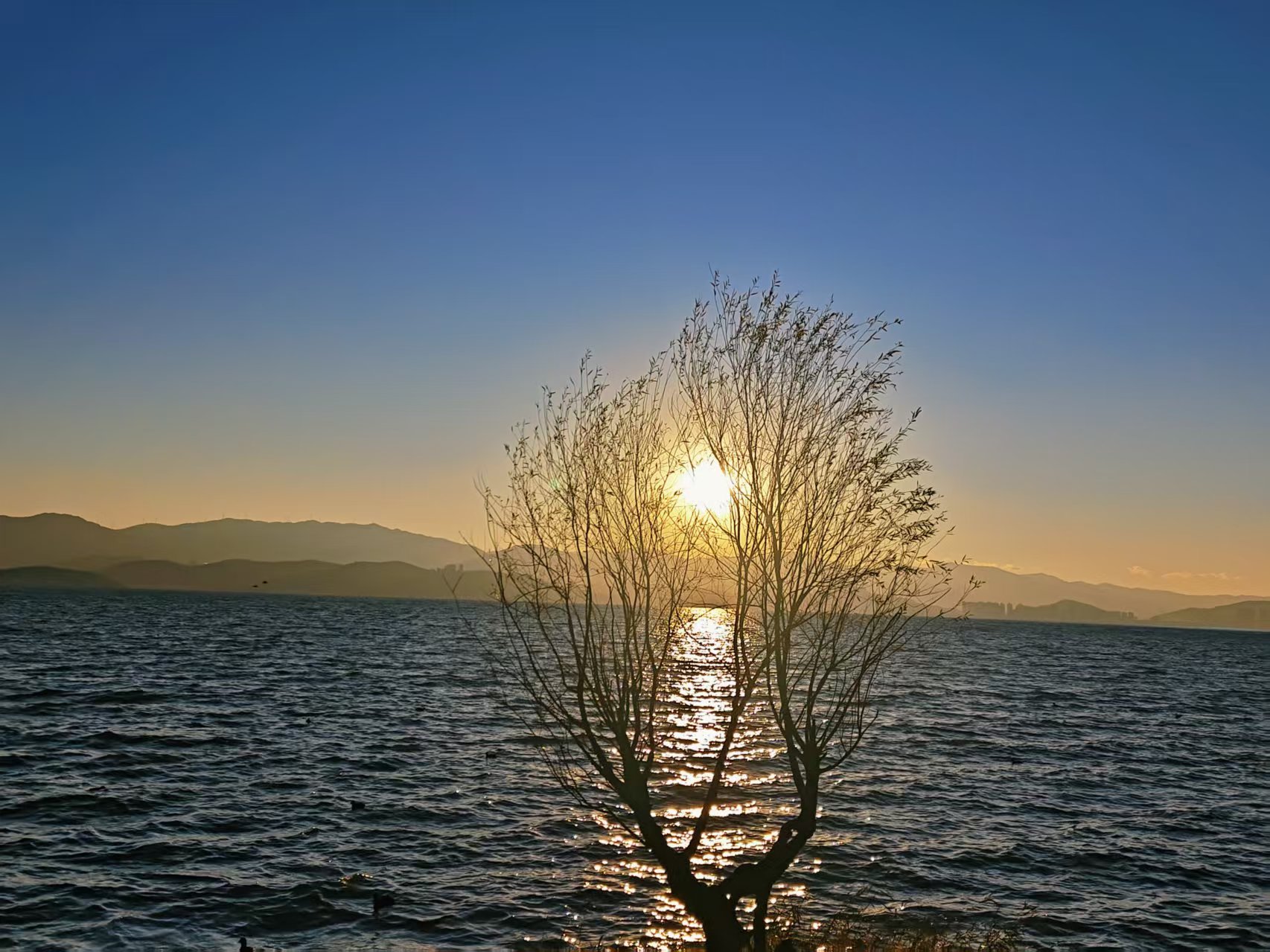 描述:洱海似镜铺展大地,碧波荡漾间倒映着天光云影,晨昏时分碎金洒落,恍若星河坠入人间。